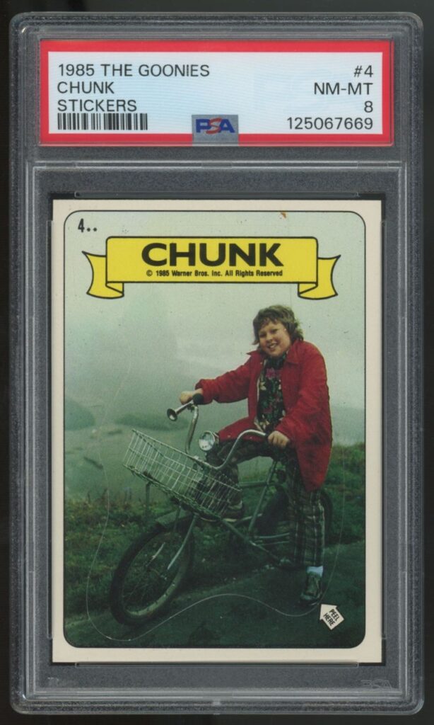 Despite all that, graded copies of Chunk are still usually priced like a random movie sticker, not an early cardboard appearance of a top-tier 80s character. It’s the classic non-sports blind spot: everyone loves the movie, but very few people have done the homework on the cards.